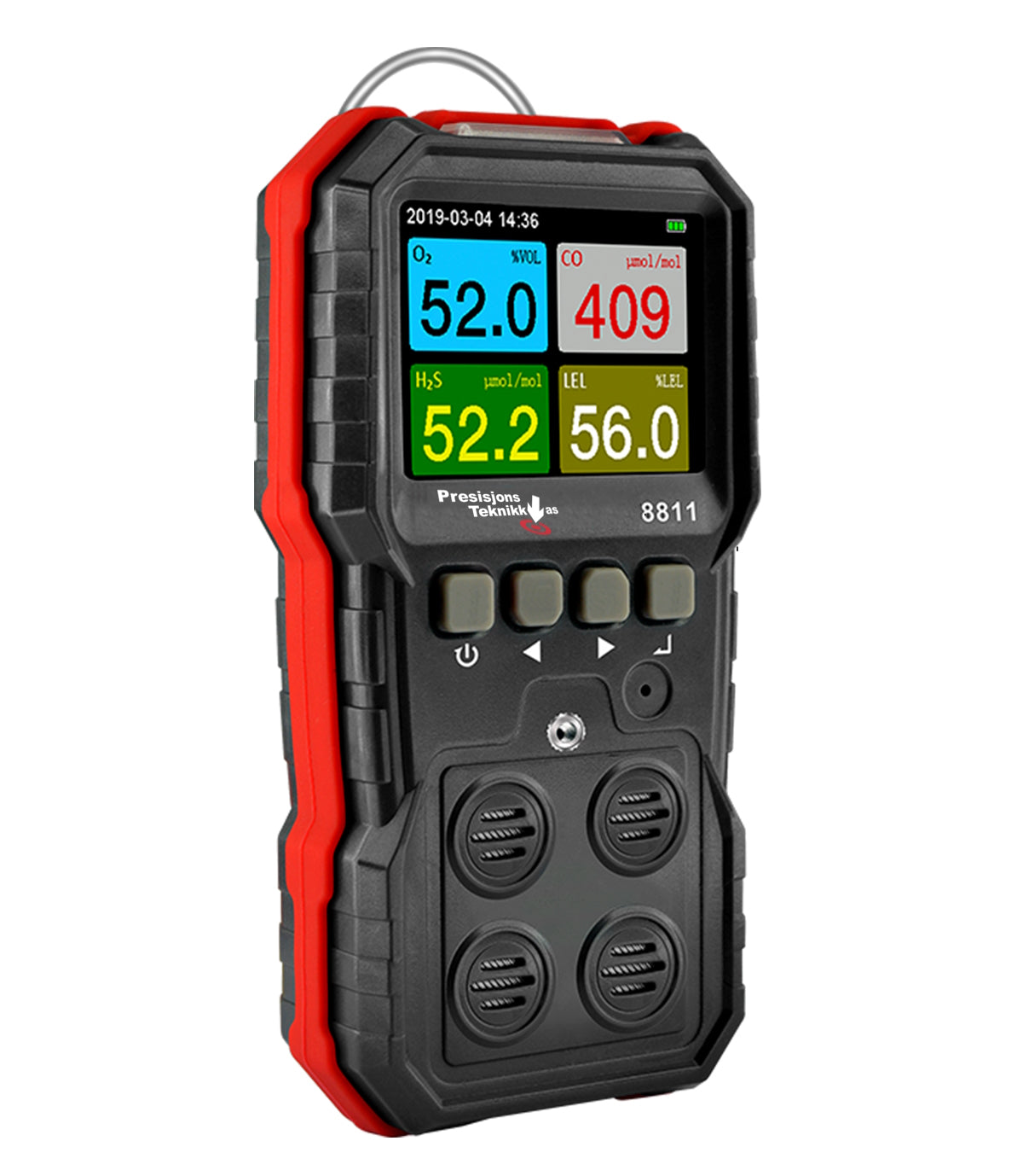 I pakken er det en standard 4 gass måler, som kan brukes til arbeid i kummer osv. men som er kalibrert med en blandingsgass med 2% Hydrogen. LEL (laveste antenningspungt for brennbare gasser) varsler da ved tilstedeværelse av hydrogen mindre enn 2 %.