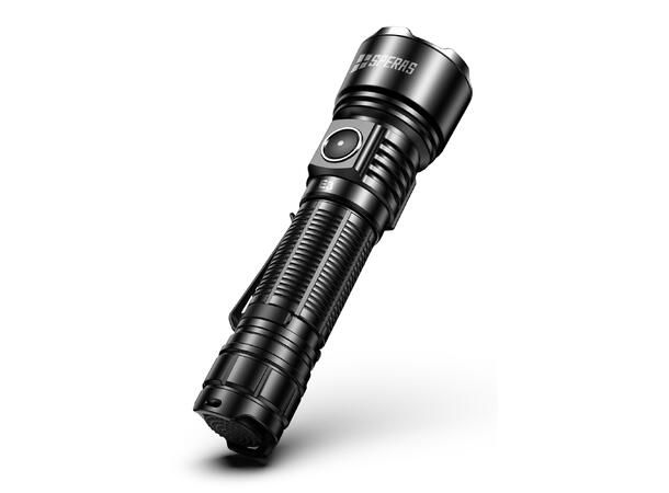 Kompakt lommelykt med kraftig lysstråle som når hele 350 meter på maks styrke.