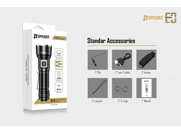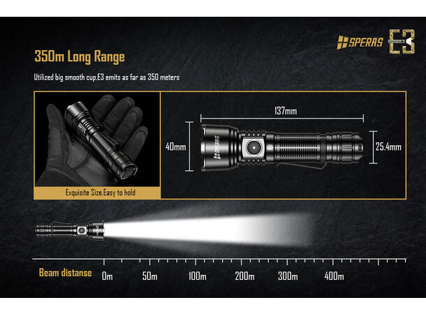 Speras E3 er en kvalitets lommelykt spesielt designet for taktisk og utendørsbruk
