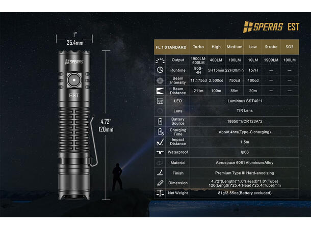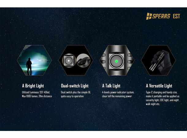 Speras EST er en multifunksjonell lommelykt spesielt designet for utendørsbruk